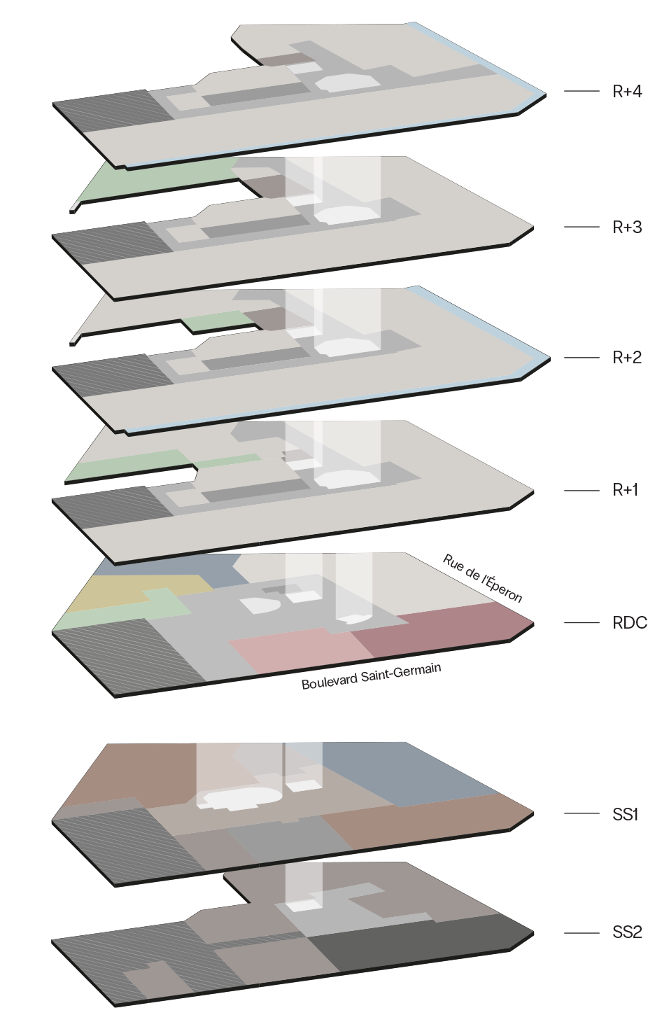 Des espaces polyvalents faisant partie du socle réversible de services situé en sous-sol.