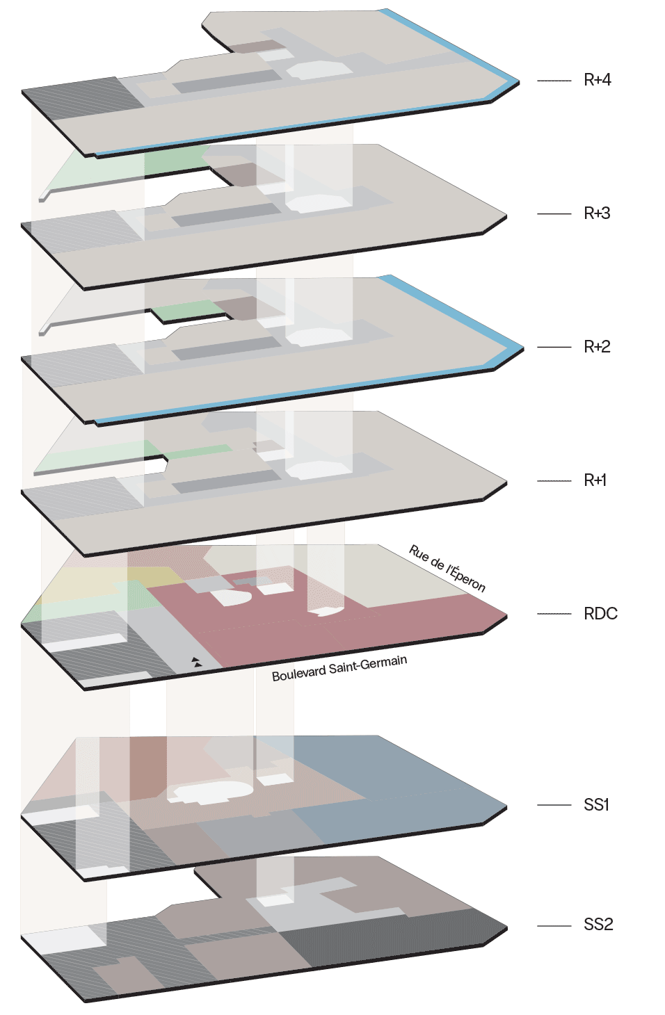 salles de réunionDes espaces polyvalents faisant partie du socle réversible de services situé en sous-sol.